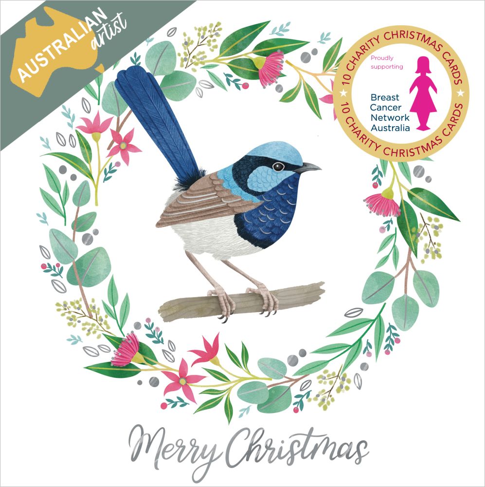 Add BREAST CANCER NETWORK AUSTRALIA FAIRY WREN WREATH CHARITY BOXED CHRISTMAS CARDS to the cart