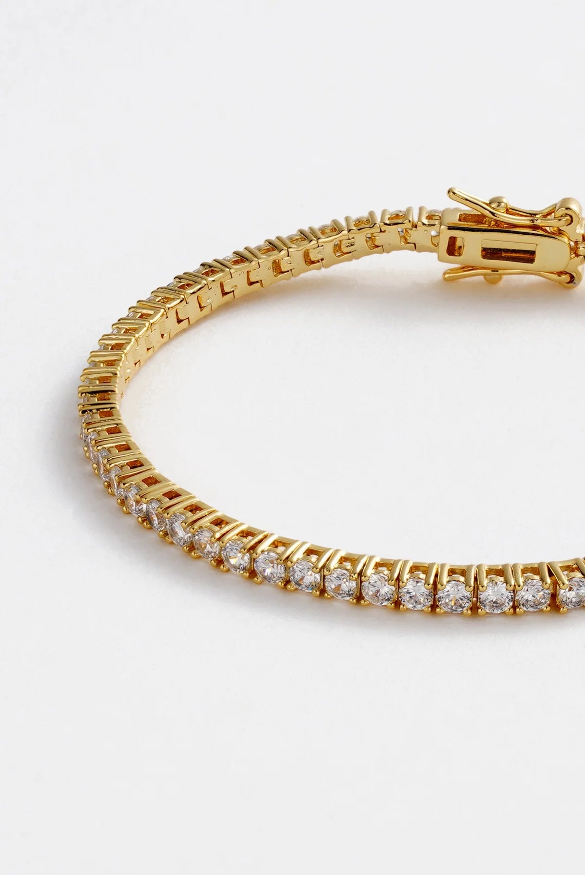 The matching bracelet to our viral Dani Tennis Necklace. This timeless piece features a row of shimmering crystals set in gold, offering the perfect balance of elegance and everyday wear.