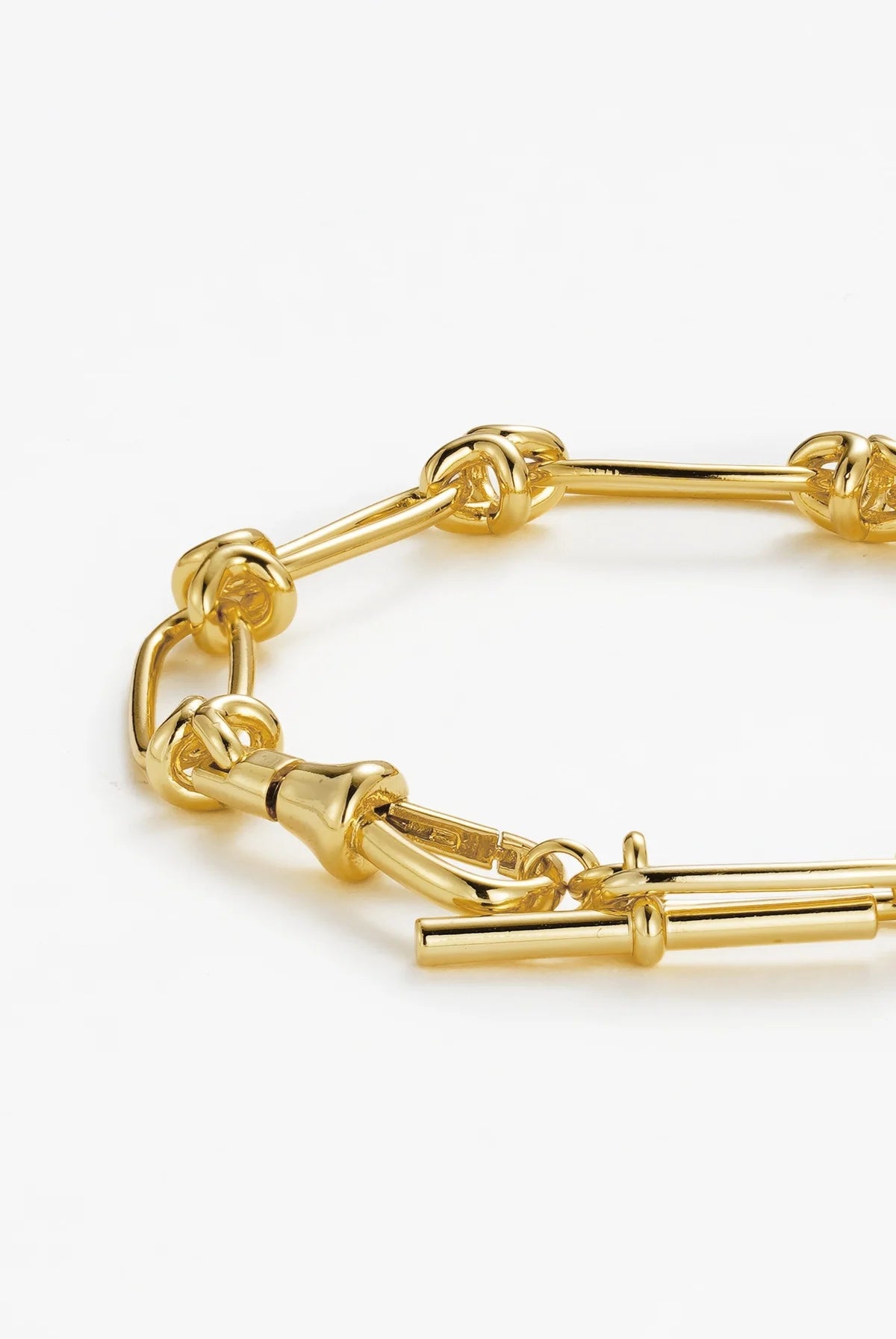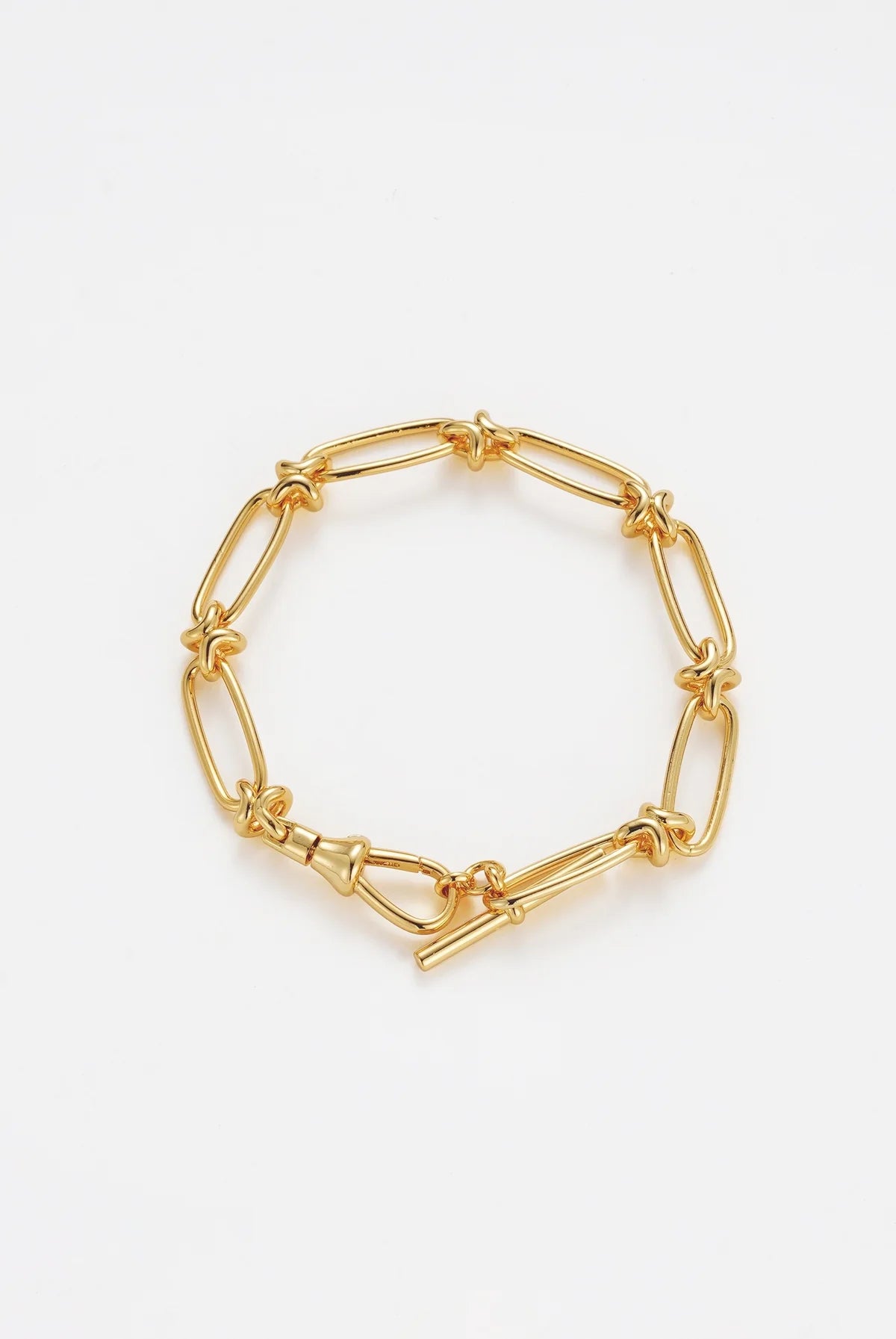 The Lucia Bracelet is a modern chain style designed with both elegance and function in mind. Featuring a statement clip that allows you to adjust the length for the perfect fit, it’s finished with a removable fob pendant for a touch of versatility. Crafted in polished gold links, the Lucia Bracelet is timeless on its own and pairs effortlessly with the Lucia Necklace for a coordinated look.