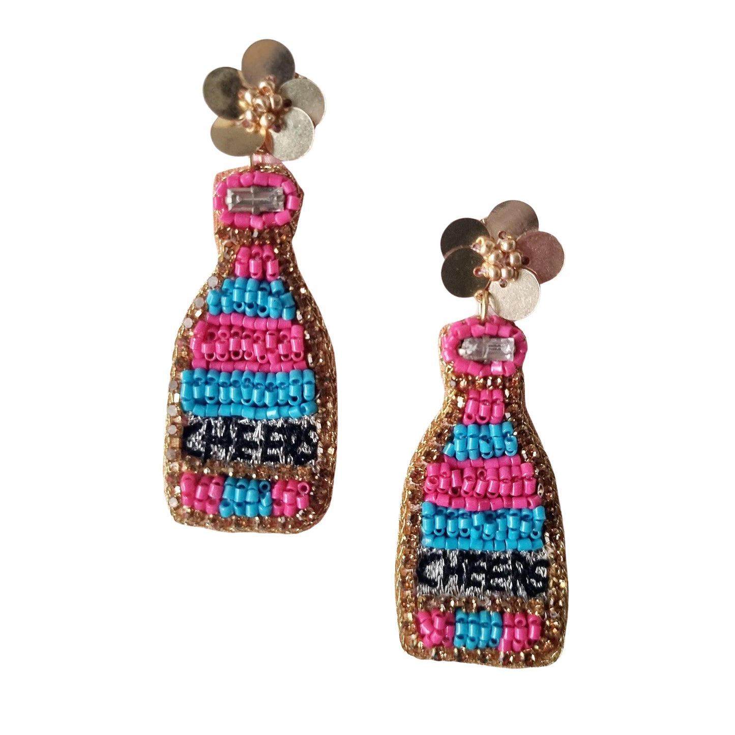 Add BEADED CHEERS CHAMPAGNE BOTTLE EARRING HOT PINK MULTI to the cart