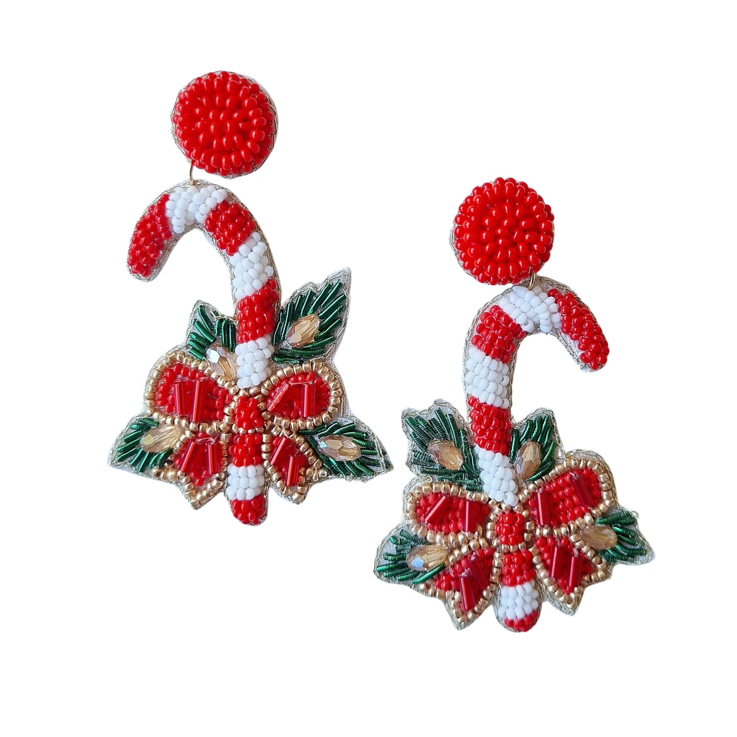Add DOUBLE CANDY CANE CHRISTMAS BEADED EARRING to the cart