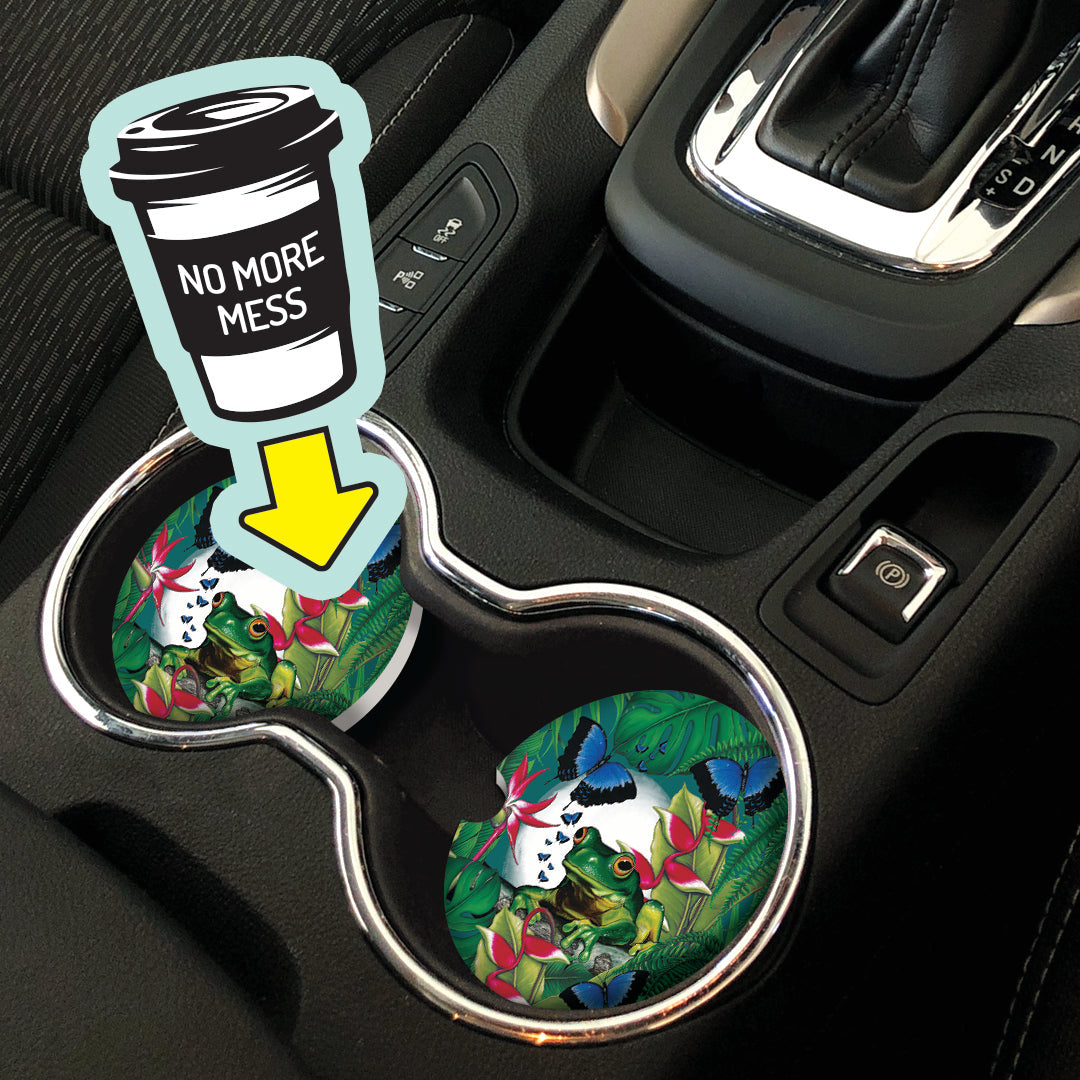 Keep your car cup holders clean and free from spills with this absorbent ceramic car coaster. Absorbs moisture and fits most cup holders.