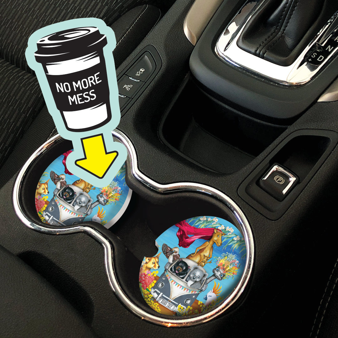 Keep your car cup holders clean and free from spills with this absorbent ceramic car coaster. Absorbs moisture and fits most cup holders.