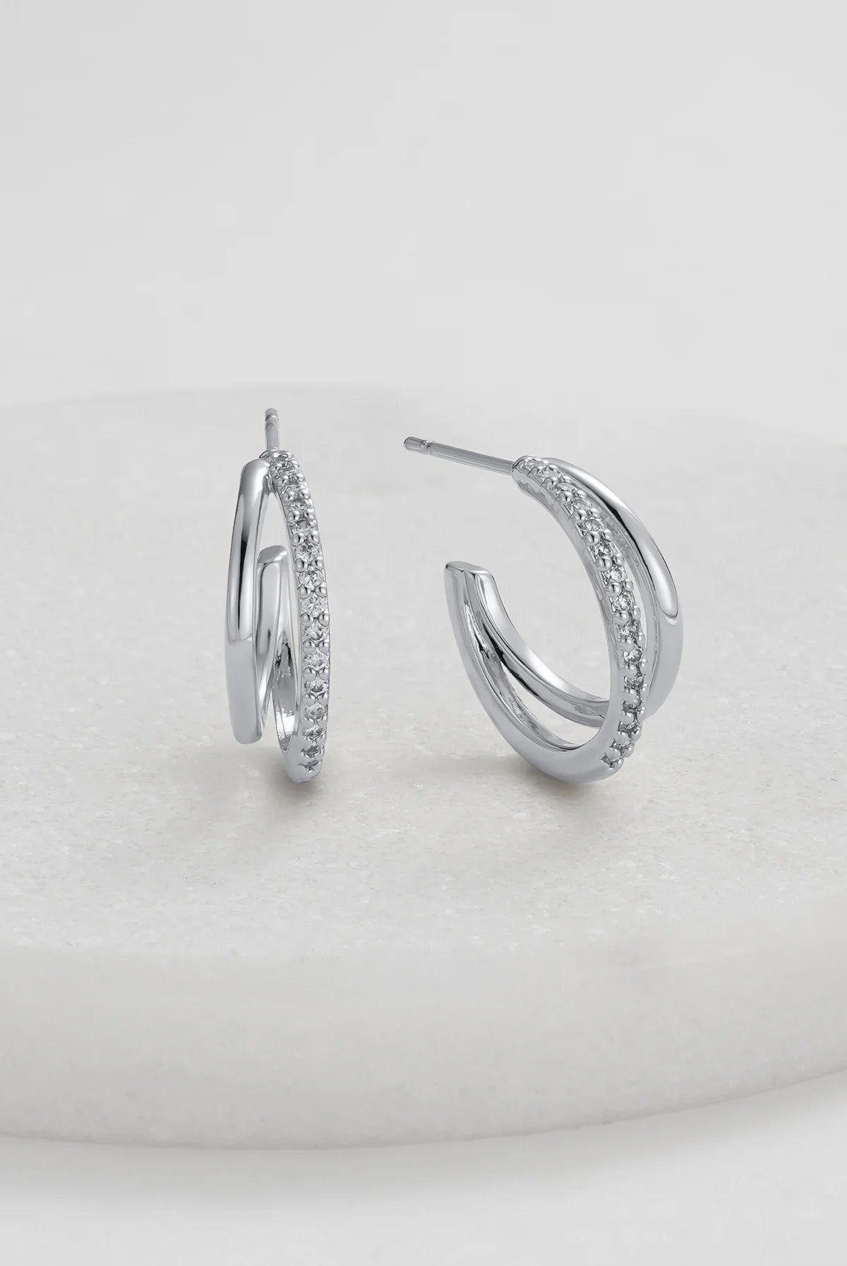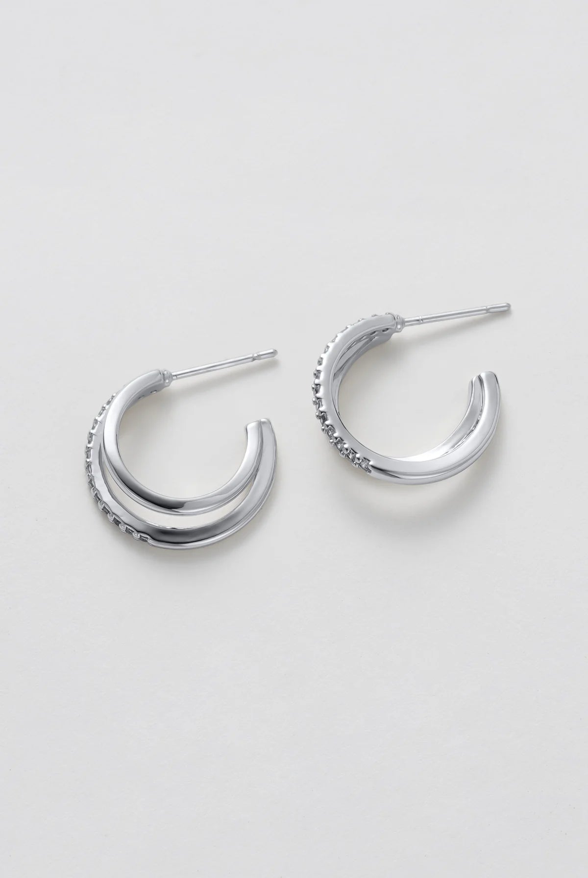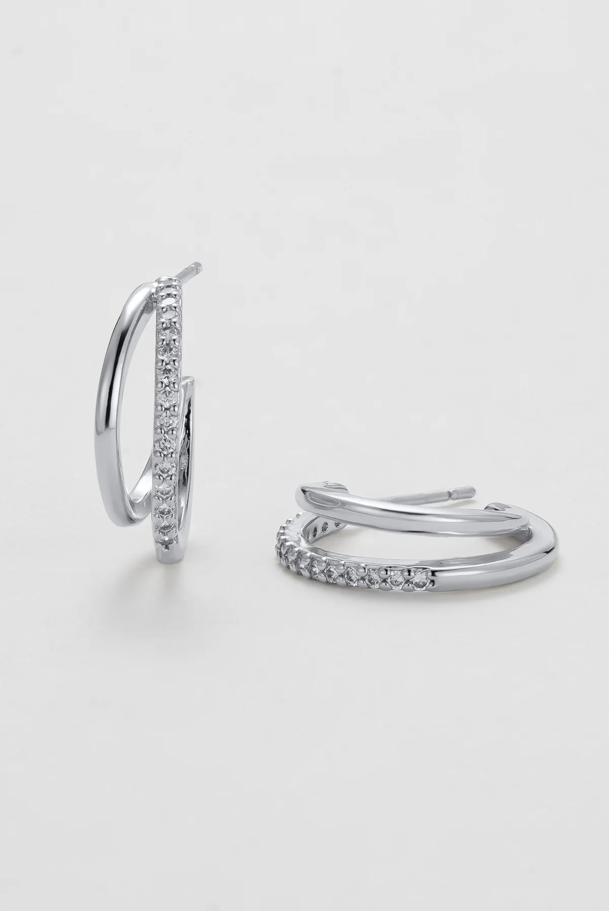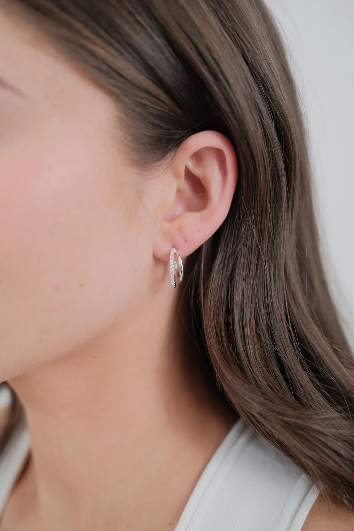 The Celeste Hoop brings a fresh twist to a timeless silhouette. With its double-layered design and a line of sparkling crystals, this silver-tone style offers just the right balance of elegance and edge. Perfect for elevating your everyday look or adding subtle shine to evening wear, the Celeste Hoop is made to be on high rotation.