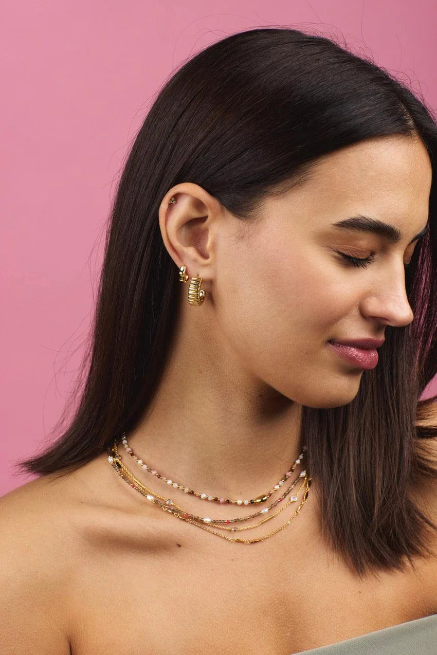 These huggie earrings feature a sleek design with subtle bamboo-inspired detailing, adding a touch of nature-inspired charm to your look. Crafted with attention to detail, the Tamara Huggie Earrings offer a comfortable and secure fit, making them perfect for everyday wear.