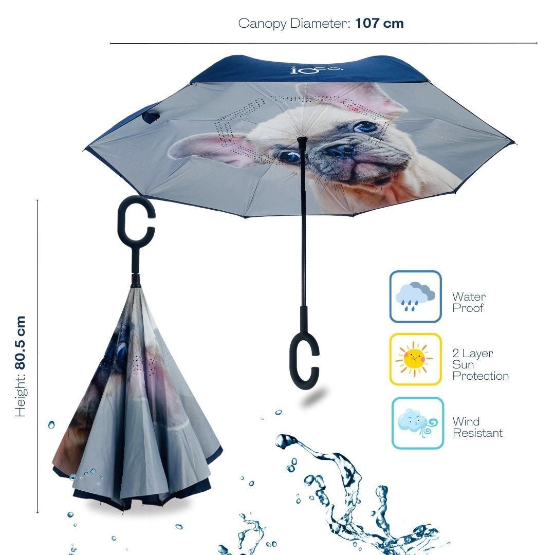 The IOco Reverse Umbrella not only looks stunning with the designs on the outside when down and on the underside when in use, it has innovative features that make the traditional umbrella redundant: