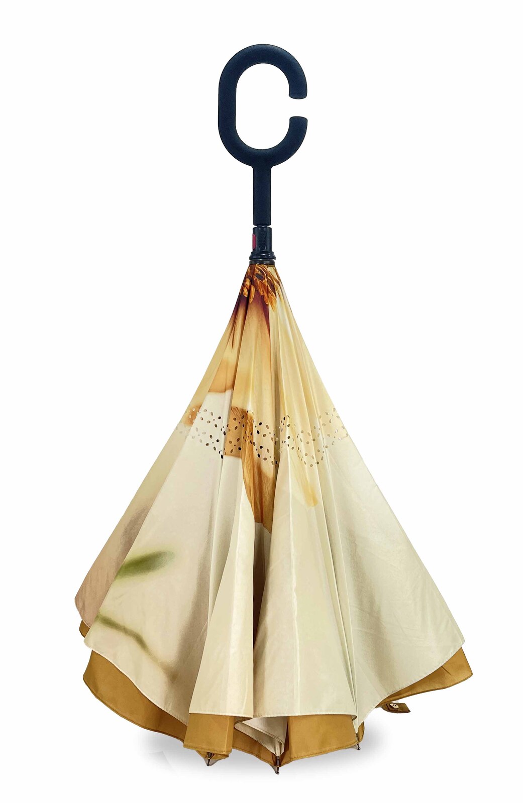 Add a touch of elegance to every rainy day with the IOco Golden Poppy Reverse Umbrella – where beauty meets functionality!