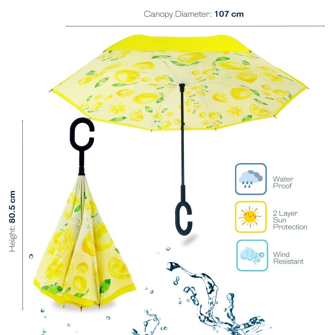 The IOco Reverse Umbrella not only looks stunning with the designs on the outside when down and on the underside when in use, it has innovative features that make the traditional umbrella redundant: