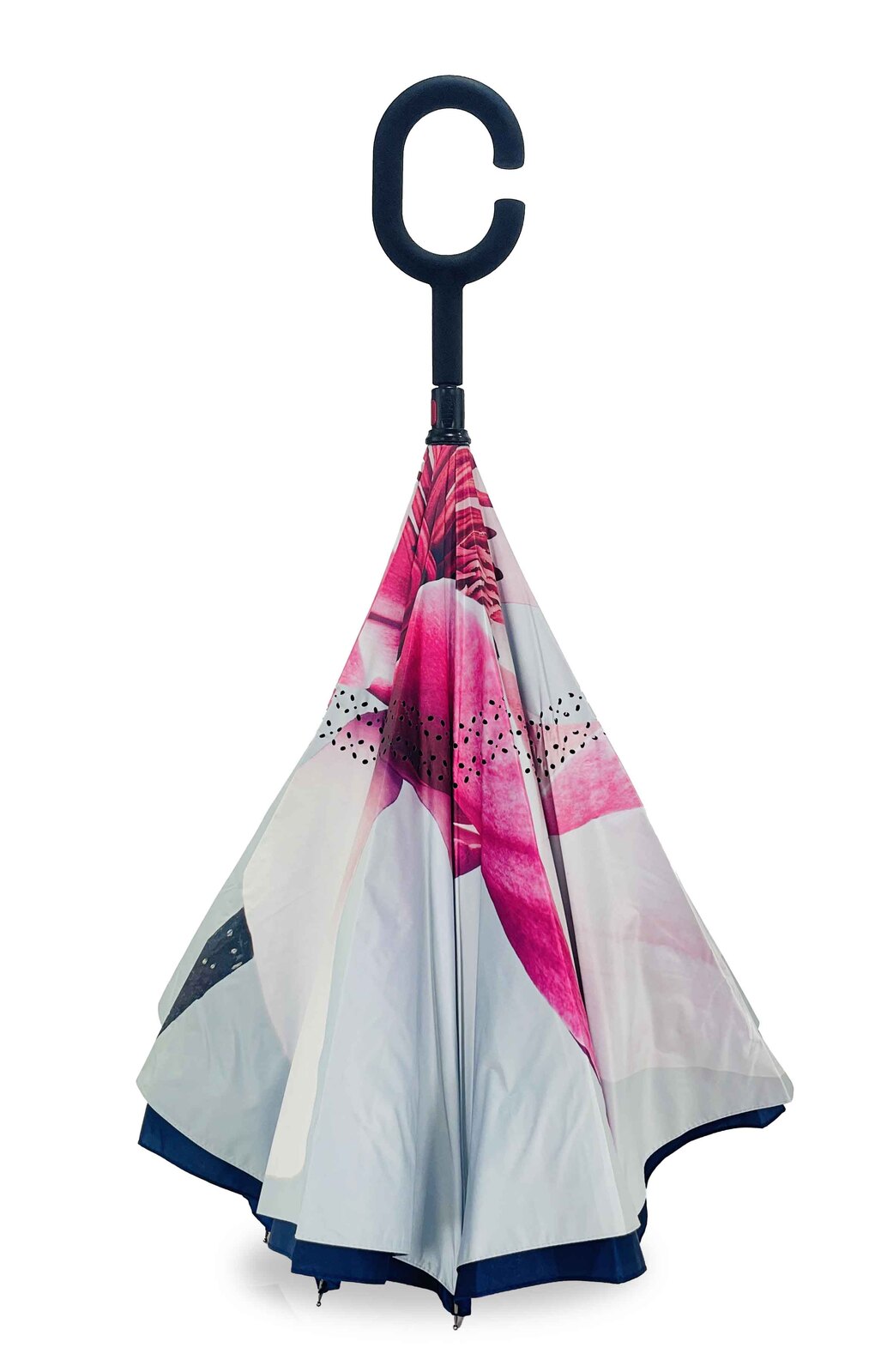 Add a touch of floral elegance to your day with the IOco Pink Magnolia Reverse Umbrella – where nature’s beauty meets modern innovation.