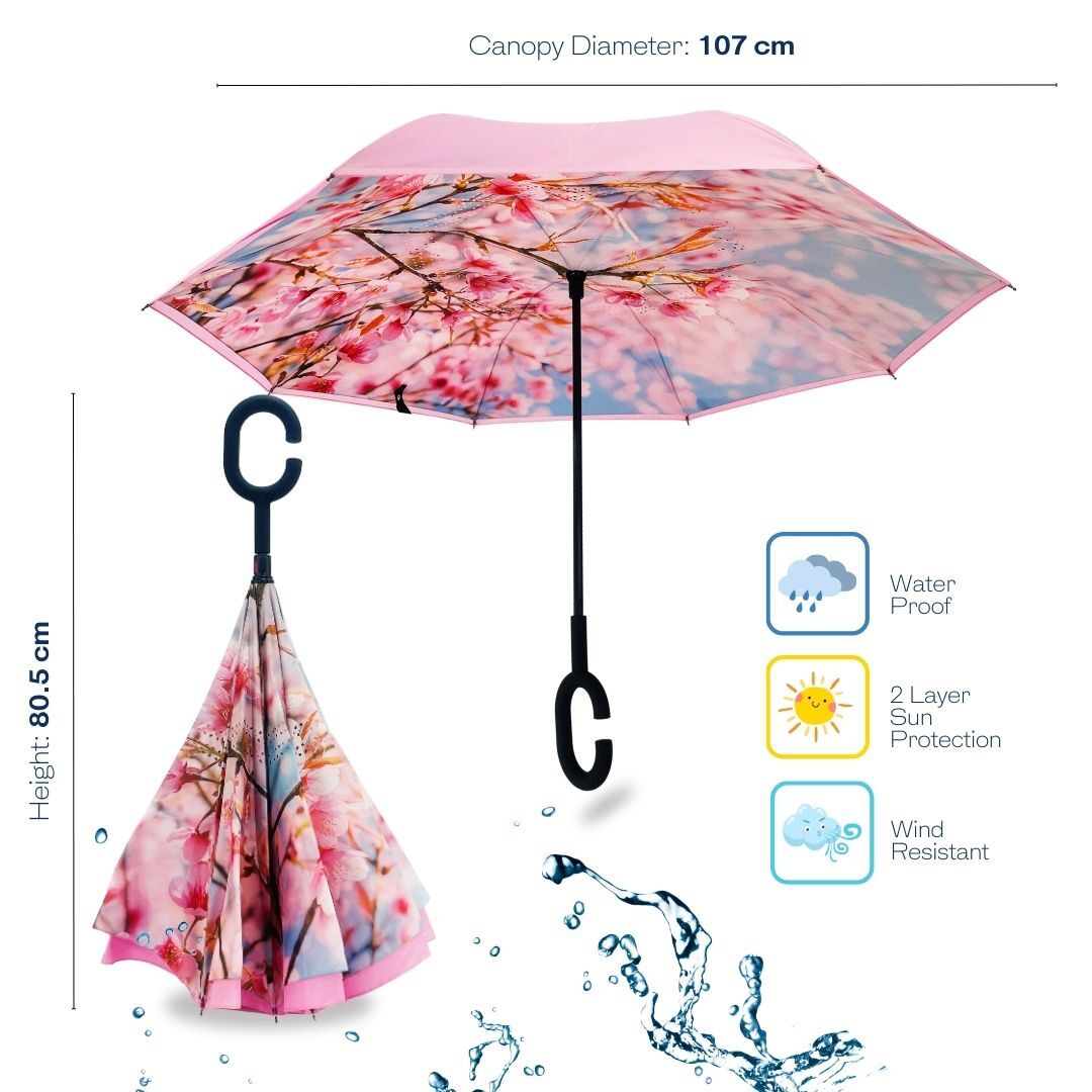 Blossom into elegance and practicality with the IOco Reverse Umbrella in the enchanting Sky Blossom design, a must-have for those capricious drizzly or radiant days. This umbrella isn't merely a shelter from the weather; it's a personal statement of your flair for sophistication and innovation, with a penchant for the springtime bloom.