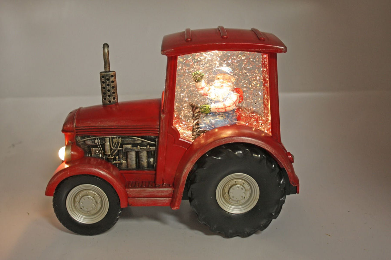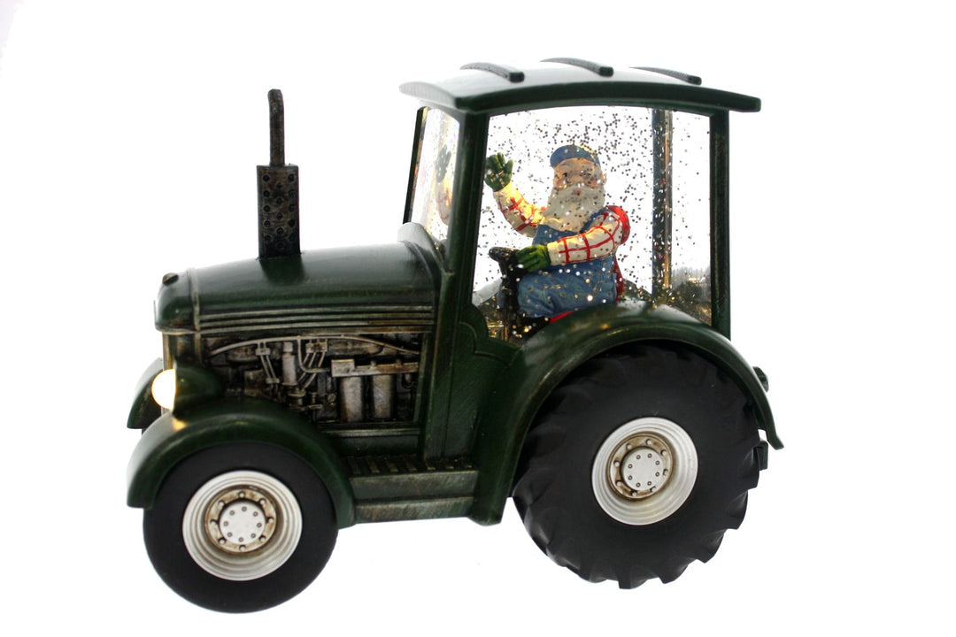 Add Glitter Lantern Santa In Green Tractor to the cart