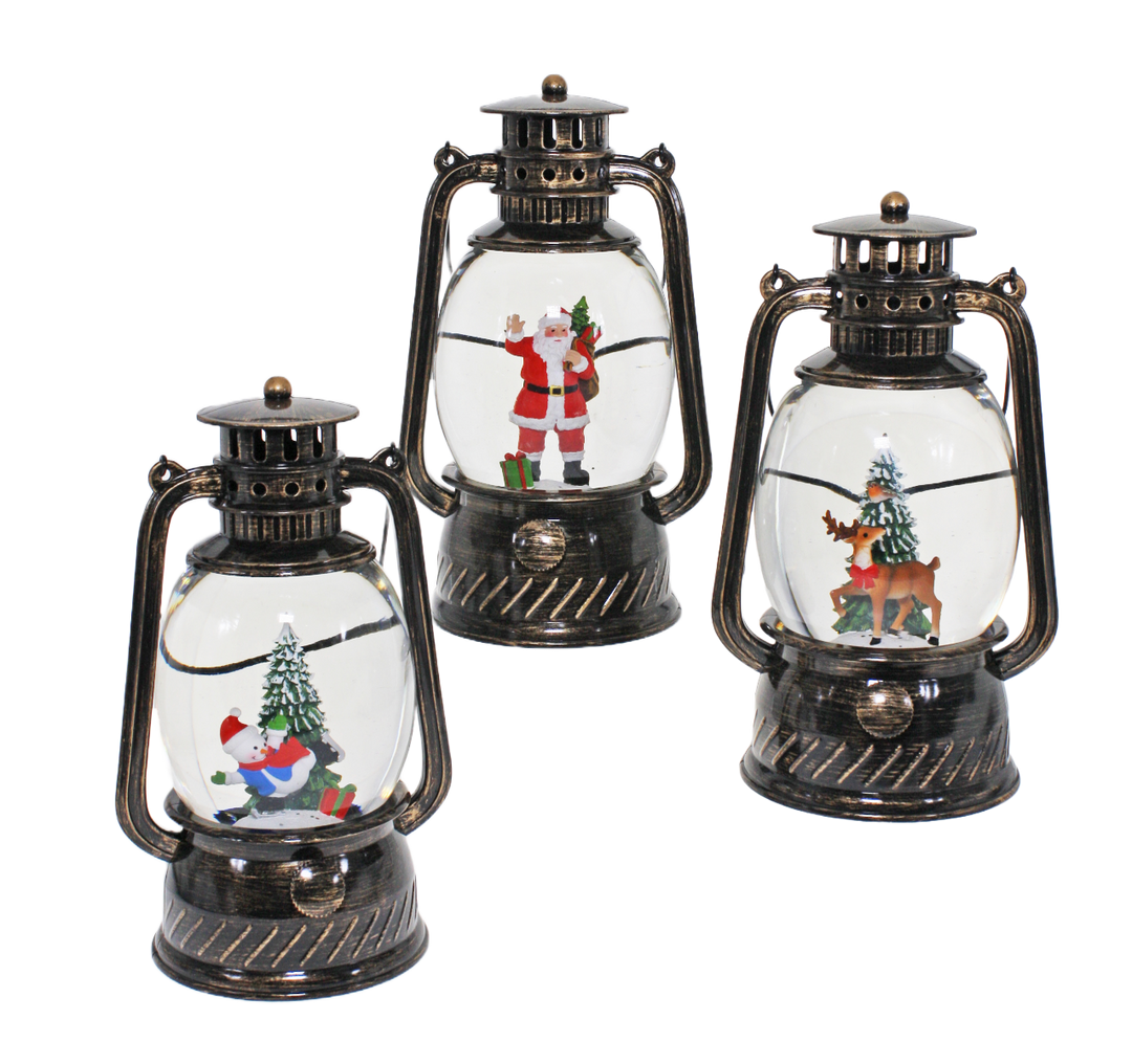 Add Red Christmas Lantern LED with swirling glitter- Santa with Snowman to the cart