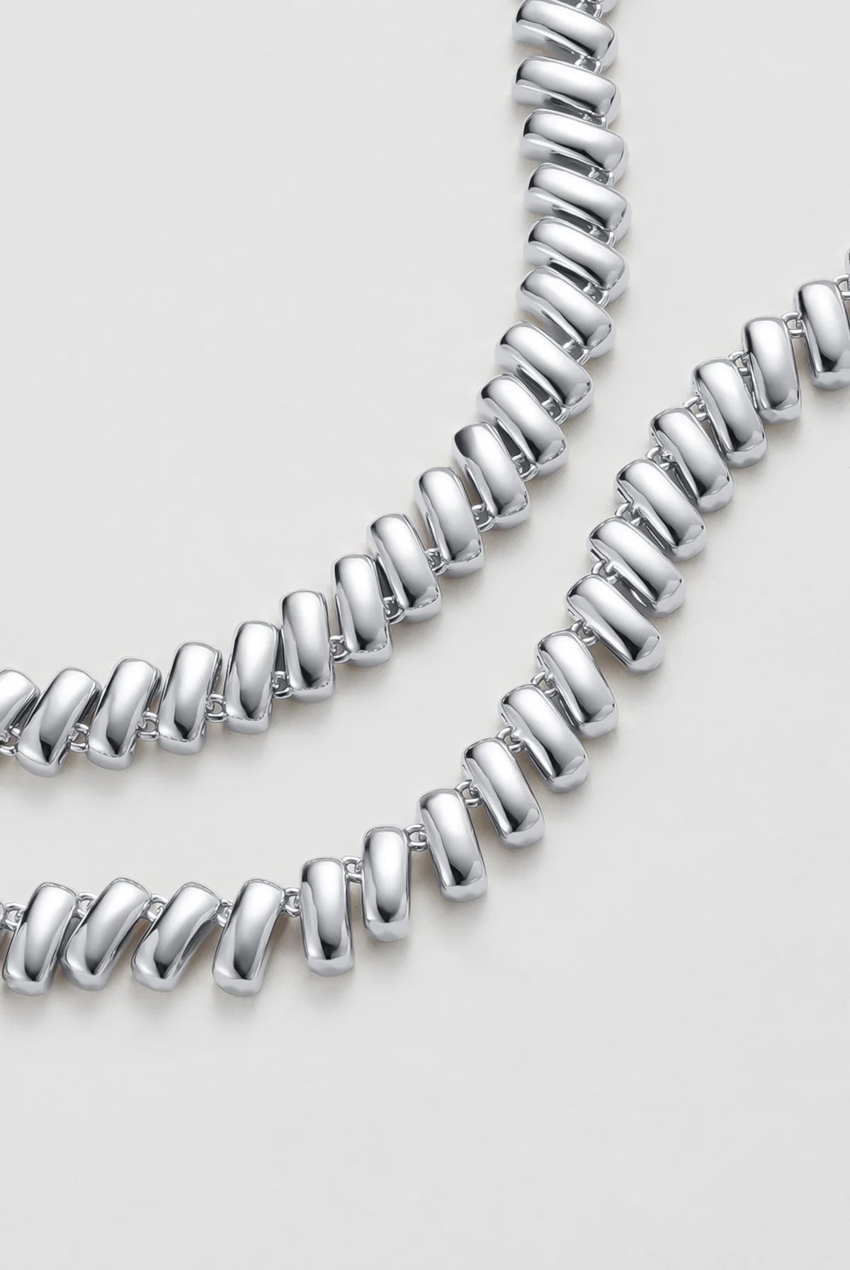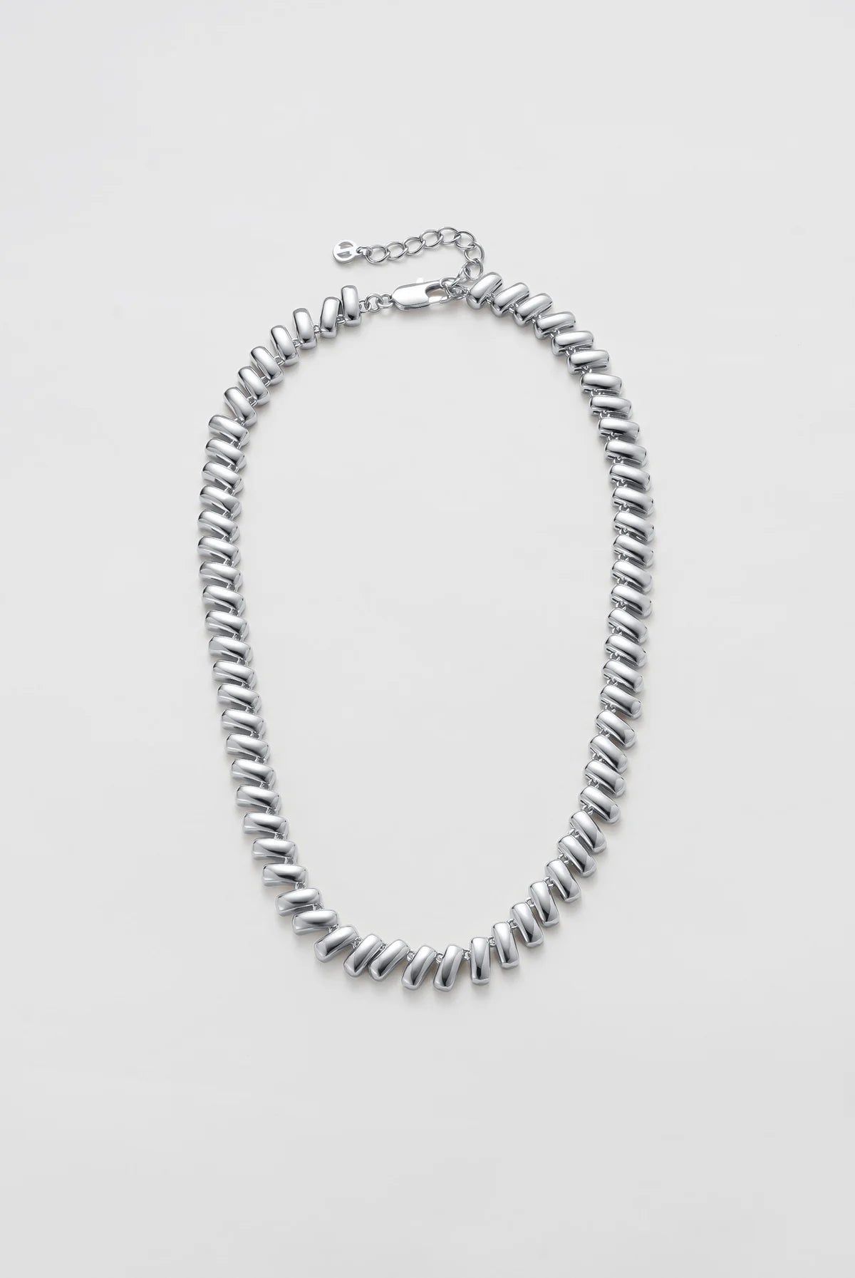 Emerson Necklace– Bold and striking, the Emerson Necklace is crafted from high-shine gold links with a modern, sculptural silhouette. Its chunky, fluid design makes it the perfect statement piece to elevate any outfit, whether worn alone or layered for a contemporary edge.