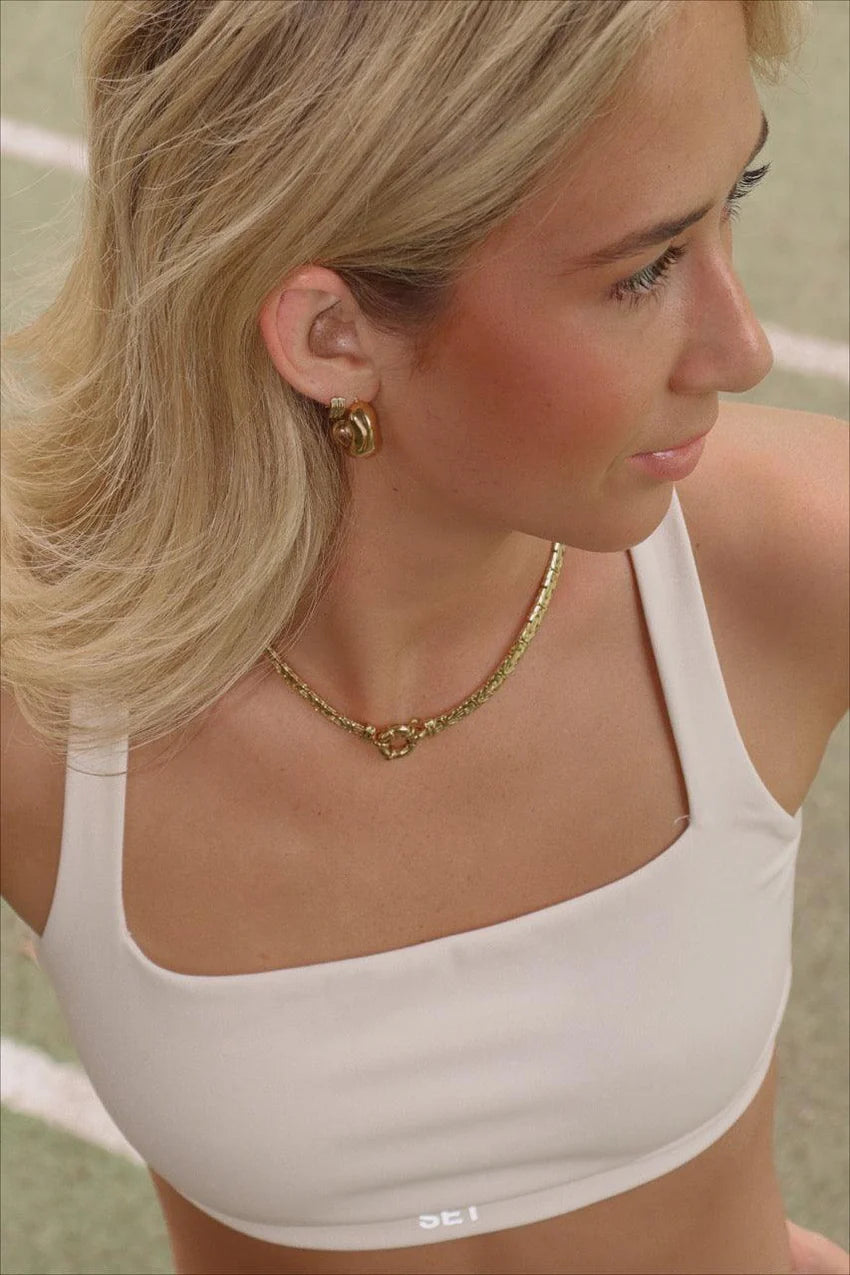 Introducing our best-selling Natalie Necklace, a statement piece that exudes timeless elegance. Crafted with meticulous attention to detail, this necklace features an intricate and thick chain design that instantly captivates attention. Its centrepiece is a beautiful clasp positioned at the front, adding a unique and stylish touch to the overall design.