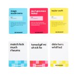 You’ve seen it go viral time and time again. Incohearent™ is the party card game where you compete to guess the gibberish phrase on the card. Each card has a combination of words on the front that, when recited out loud, sound like the phrase written on the back. For example, try reciting “thirds teeth or stay” out loud. Can you hear the hidden phrase? Listen closely… you’ve been saying “thirsty Thursday.” Perfect for parties and game nights with friends. Now spicier with updated content!