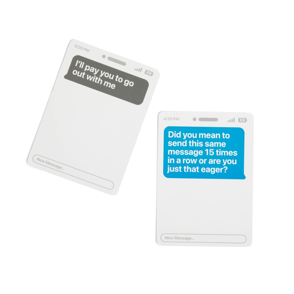 You’ve seen it go viral time and time again. New Phone, Who Dis?™ is the 100% offline, text message party card game where you compete with friends to create the funniest text message thread. Pair hilarious texts and replies to impress the judge and win the round! Perfect for parties, game nights, holidays, reunions, and more.
