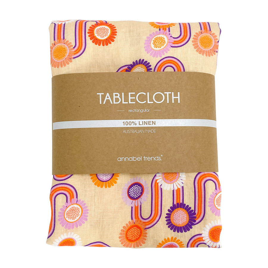 Tablecloth - Linen - Groovy Rainbows - Large 138cm x 300cm