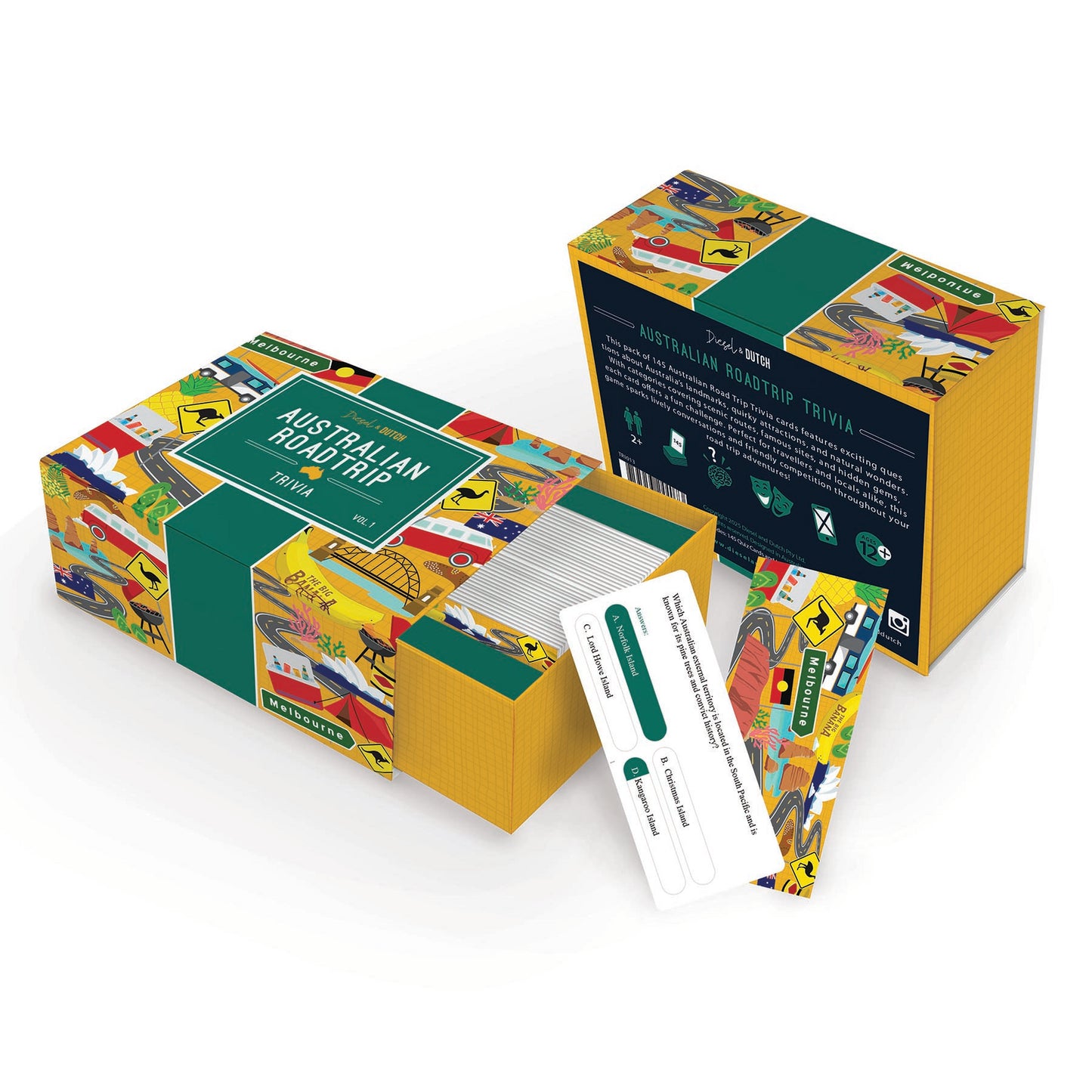 This pack of 145 Australian Road Trip Trivia cards features exciting questions about Australia's landmarks, quirky attractions, and natural wonders. With categories covering scenic routes, famous sites, and hidden gems, each card offers a fun challenge, perfect for travellers and locals alike. This game sparks lively conversations and friendly competition throughout your road trip adventures!