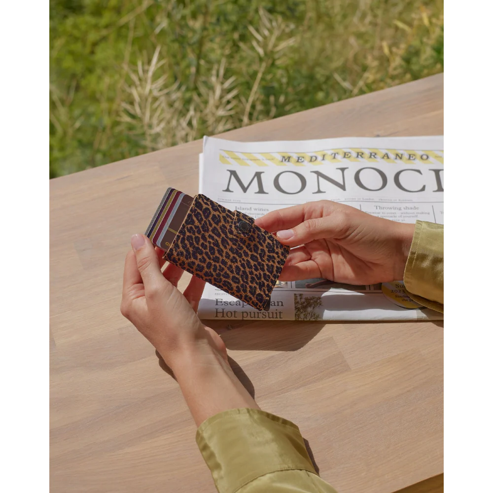 Inspired by the eye-catching leopard rosettes. The delicate clock print on the Leo wallet's leather creates depth and a unique pattern. The softer leather variety stretches and expands more over time.