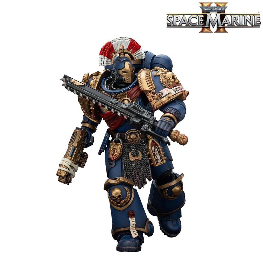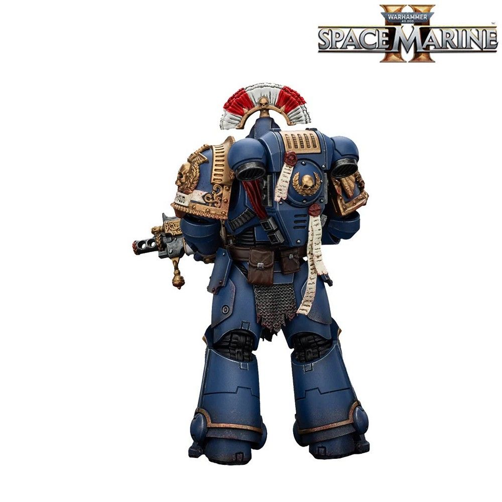 This highly detailed Warhammer 40,000: Space Marine 2 action figure features 28 points of articulation and comes with additional interchangeable parts. Additionally, this figure has LEDs behind the armoured helmet lens, which can be powered up to glow red.
