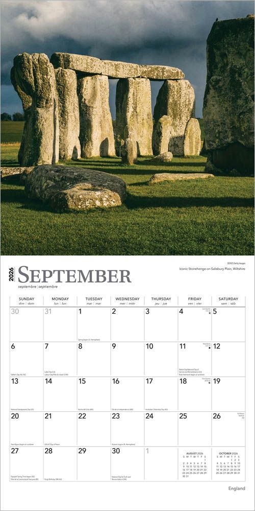 2026 Calendar England 16-Month Square Wall, BrownTrout