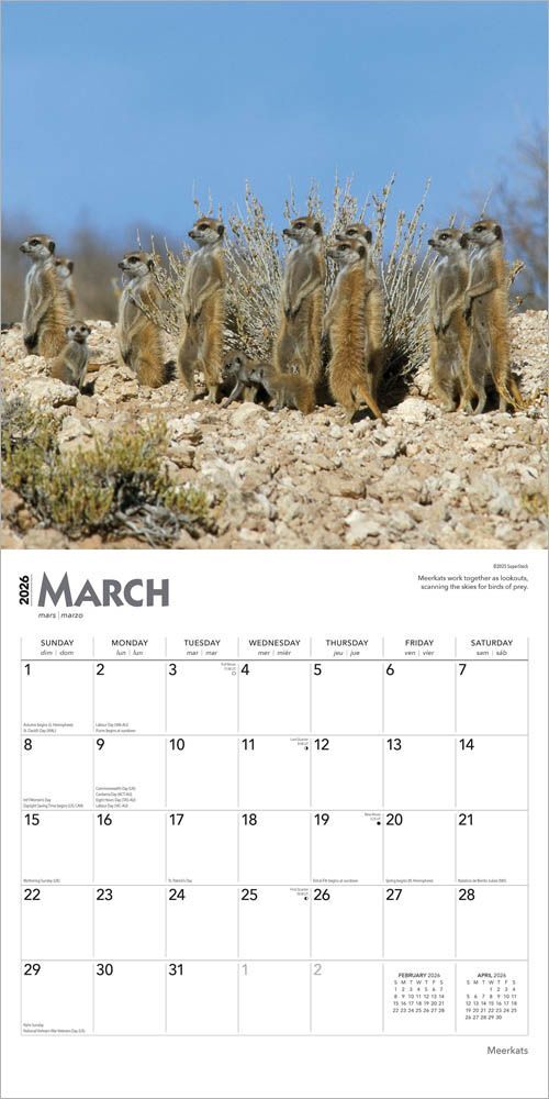 2026 Calendar Meerkats 16-Month Square Wall, BrownTrout