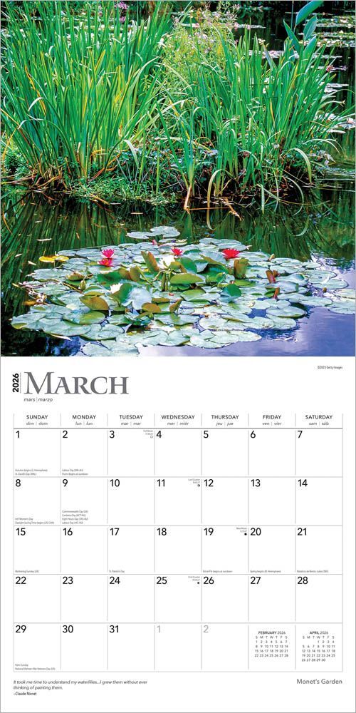 2026 Calendar Monet's Garden 16-Month Square Wall, BrownTrout