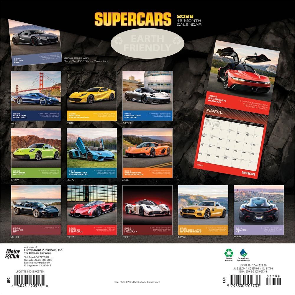 Imagine the wind brushing your face as you coast on the open road in your very own supercar, freedom at your fingertips. Supercars set the standard for superior engineering and futuristic design. Featuring a collection of sleek photographs of supercars in different locales, this calendar is sure to ignite the spark of fun and excitement for car aficionados.
