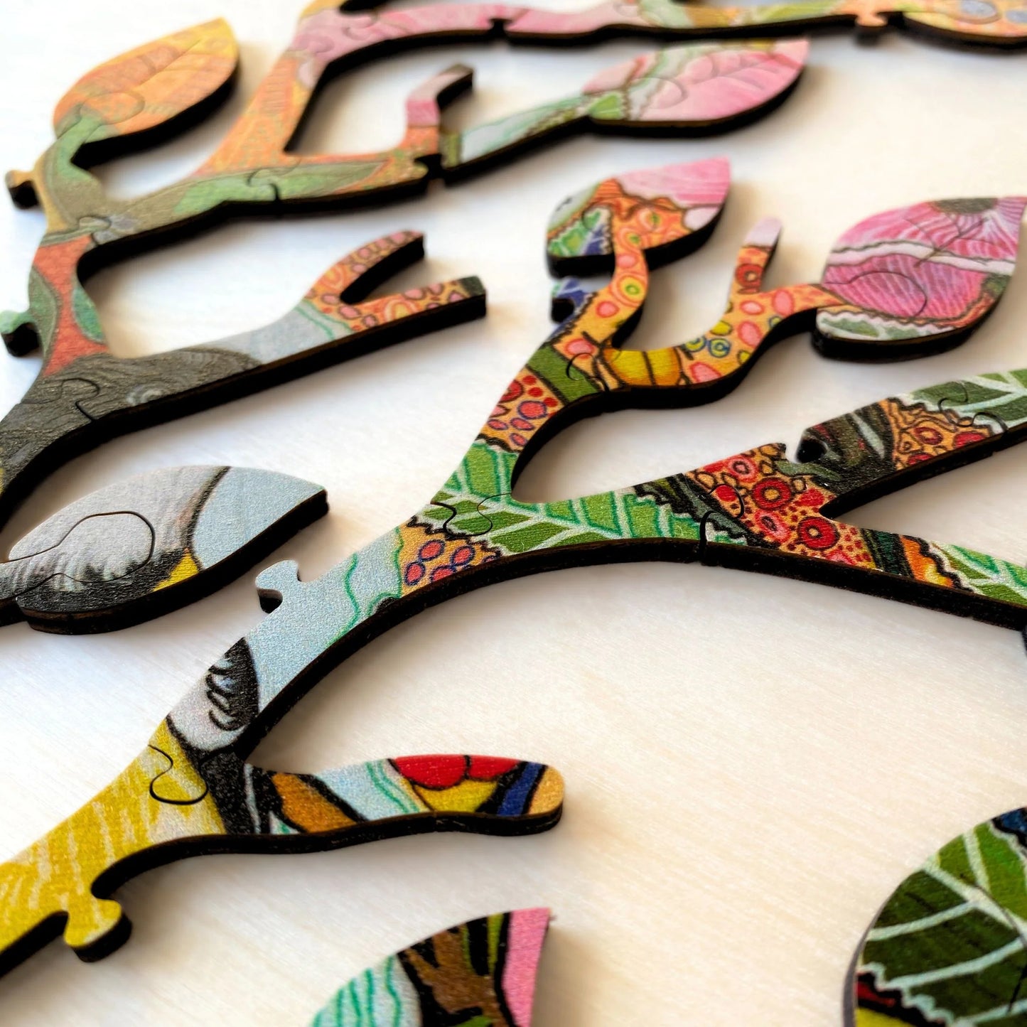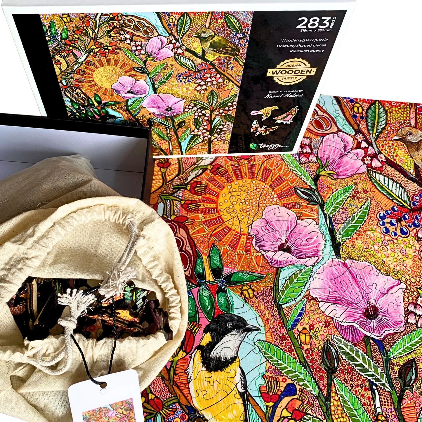 Naomi resides in Lismore, NSW and is known for her decorative style inspired by the vibrant beauty of Australian native flora and fauna. With a Diploma of Visual Arts and a background in science, Naomi's work seamlessly blends her deep understanding of art and nature. Drawing influence from renowned artists like Gustav Klimt, Henri Rousseau, and Alphonse Mucha, her pieces feature intricate patterns and vivid colors that bring life to her subjects.