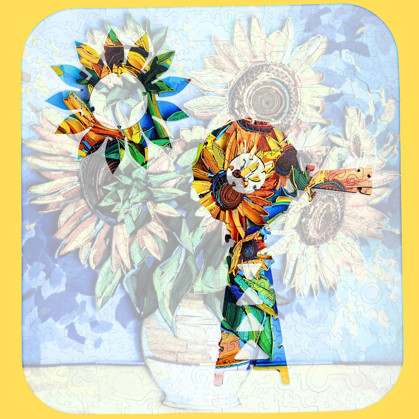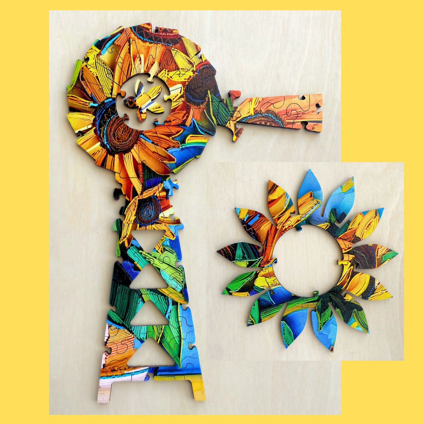 It is not only visually beautiful, bright and intriguing, it is also a challenging building experience. Dave has also drawn the pieces to represent the actual sunflower fields and a windmill that you will need to find and construct within the puzzle.