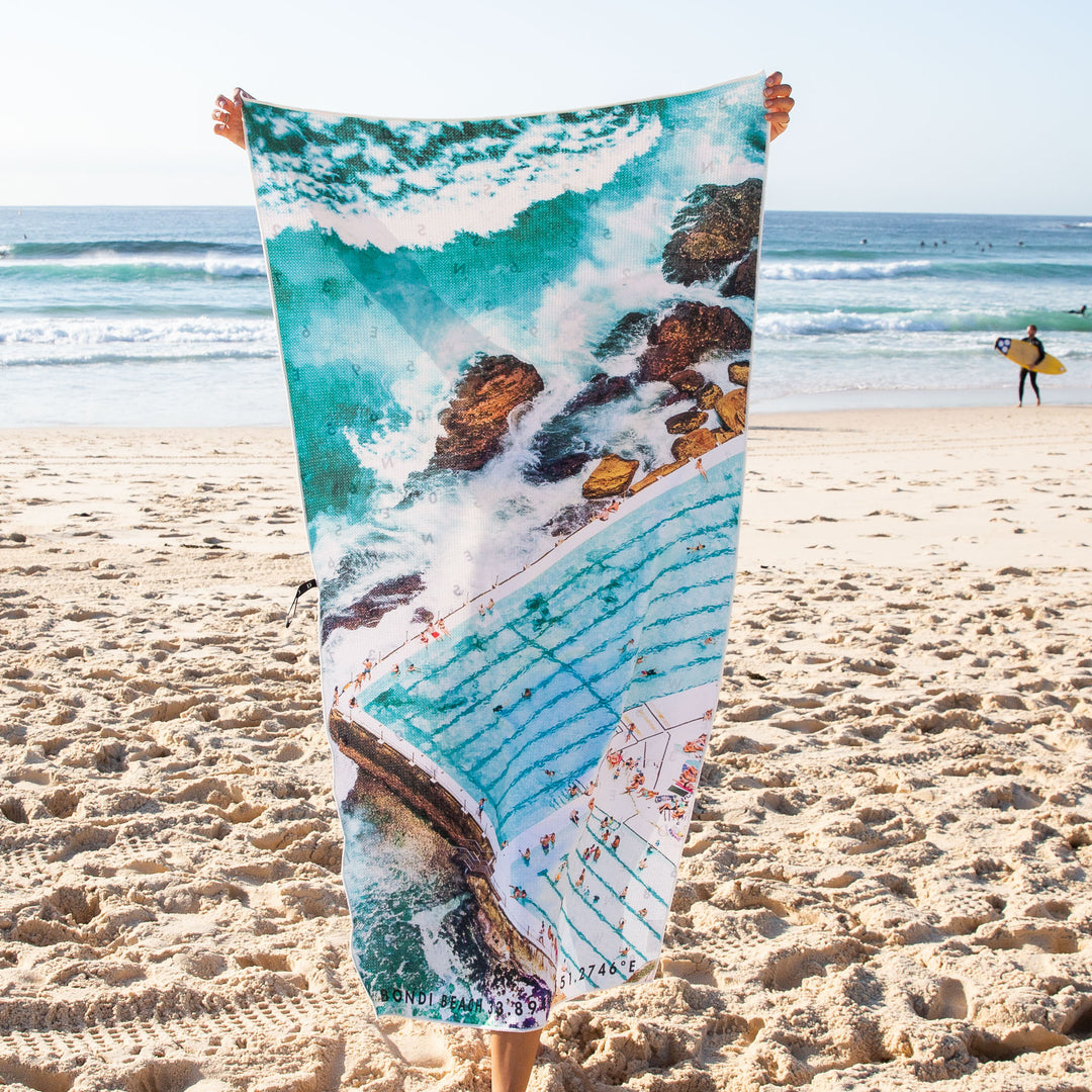 Get ready to elevate your beach game with our Sand-Free Beach Towel featuring the iconic Bondi Icebergs. Printed with a stunning photo of the famous pool and the exact coordinates of where the photo was taken, this towel is the perfect way to add a touch of Bondi to your day at the beach. Not only will you be the envy of all your friends, but you'll also have a unique keepsake to remember your Bondi experience by. Say goodbye to sandy towels and hello to a stylish, functional and memorable beach accessory.