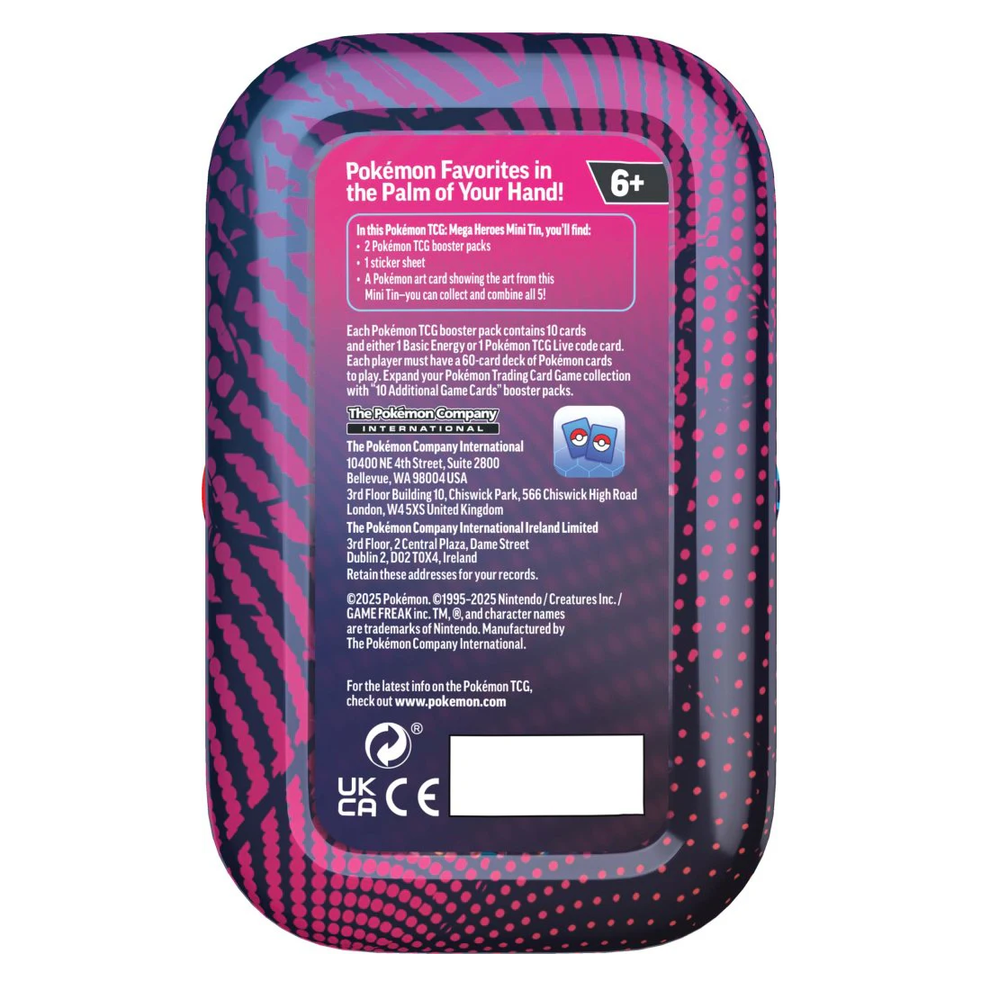In this Pokémon TCG: Mega Heroes Mini Tin, you’ll find: