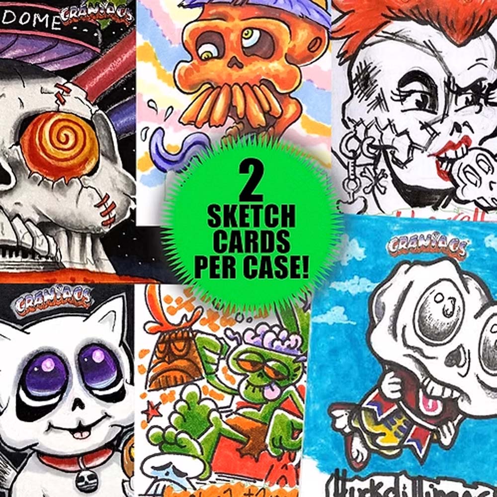 SERIES 3 – SKULLBLAM! – RELEASING FEB 25TH, 2026! Dozens of astounding new CRANIACS characters will be introduced along with the return of fan favorites from previous series – in all-new SKULLBLAM! action poses with a focused setting of the CHROME DOME. The unique character designs and spectacular paintings feature the work of Joe Simko, the wildly imaginative co-creator of CRANIACS and long-time Garbage Pail Kids artist. Joe is also overseeing the artistic contributions of several guest artists who are contributing their talents to special base cards, including the return of “Snappy Cracks,” a hilarious sub-set spoofing imaginary products from the CRANIACS world.